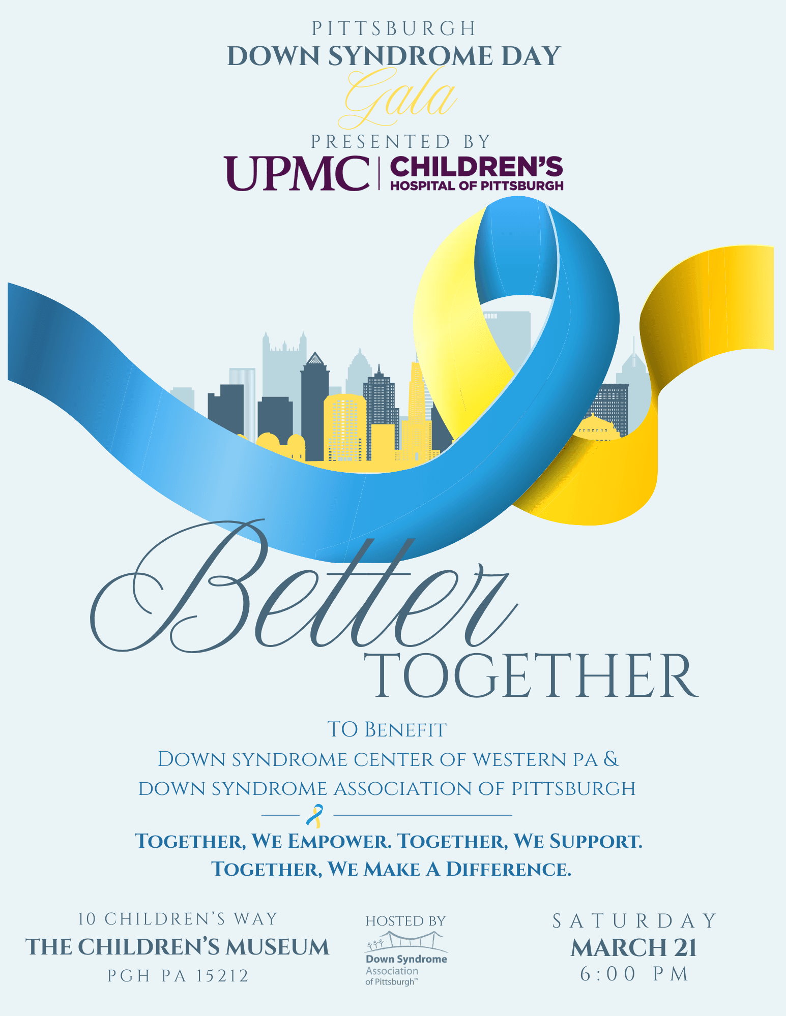 This gala proudly supports both the Down Syndrome Center of Western PA and the Down Syndrome Association of Pittsburgh.