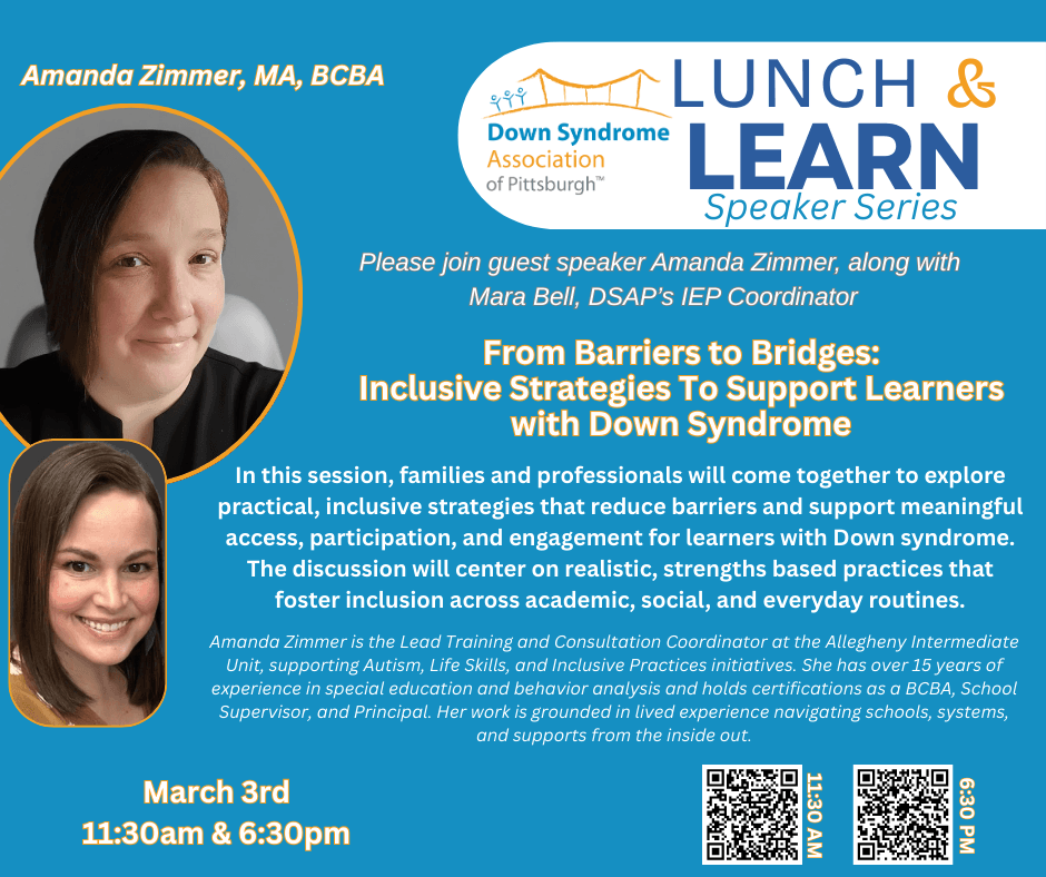 Together, our organizations are dedicated to enriching the lives of individuals with Down syndrome across the Greater Pittsburgh area through exceptional medical care, meaningful programming, and unwavering support for individuals, their families, and the community.